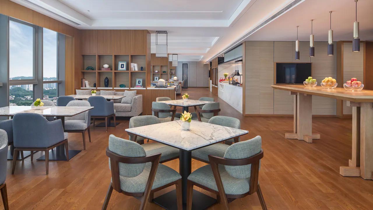 享悦中餐厅的厨师则以精湛厨艺呈现地道粤式美馔和潮州及江浙佳肴,开放式厨房的烹饪互动,为宾客带来视觉味觉双重享受,诠释别样的用餐体验,8间配有落地玻璃窗的私人包厢可分别容纳8至20位宾客,为商务洽谈抑或亲友聚会提供私密专属的用餐空间。